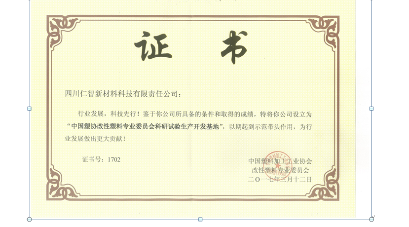 新材料科技公司被設(shè)立為“中國(guó)塑協(xié)改性塑料專業(yè)委員會(huì)科研試驗(yàn)生產(chǎn)開發(fā)基地”
